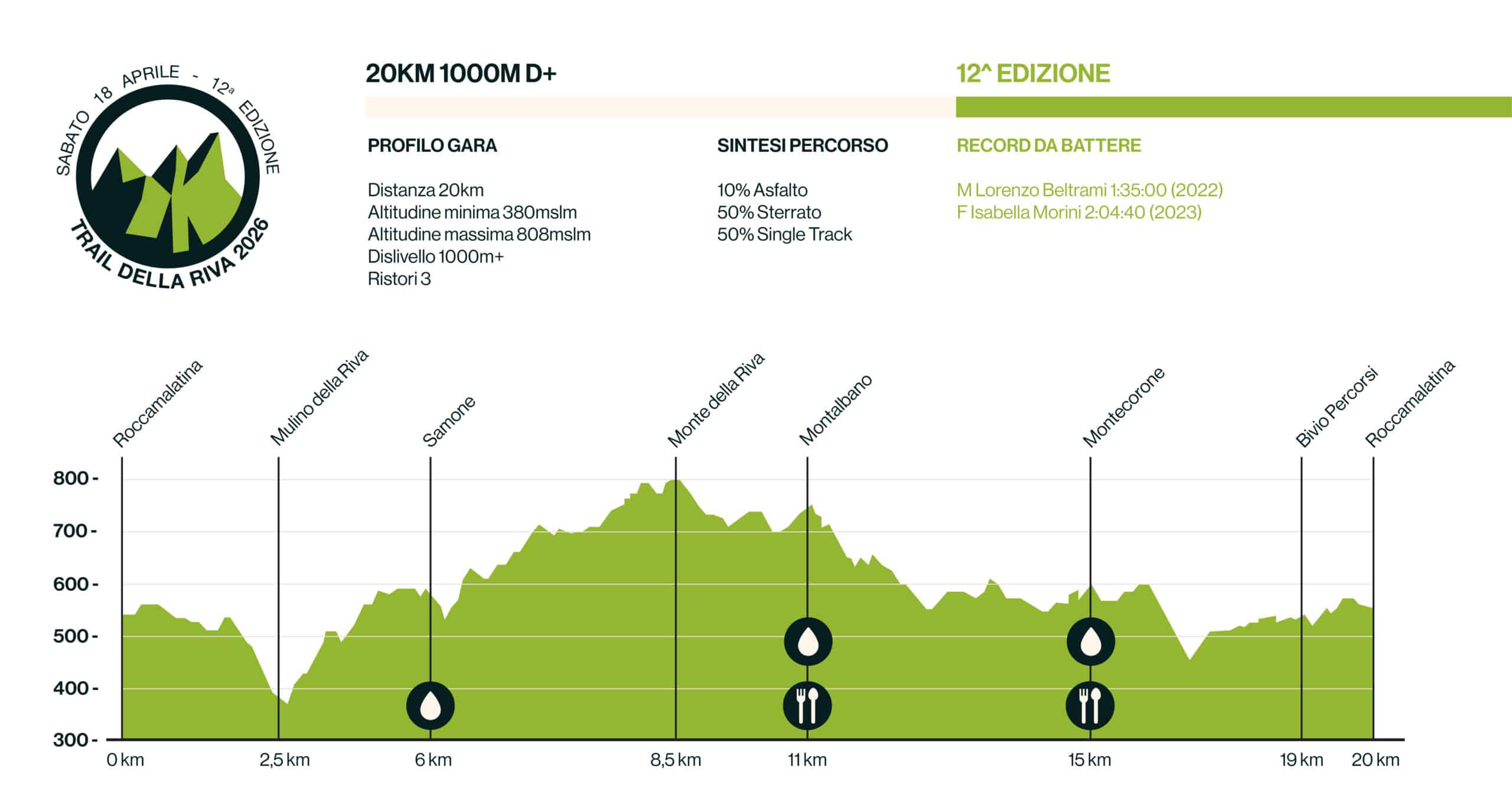 L’edizione 2026 del Trail della Riva si terrà Sabato 18 Aprile su tre percorsi di 15, 20 e 34 km.